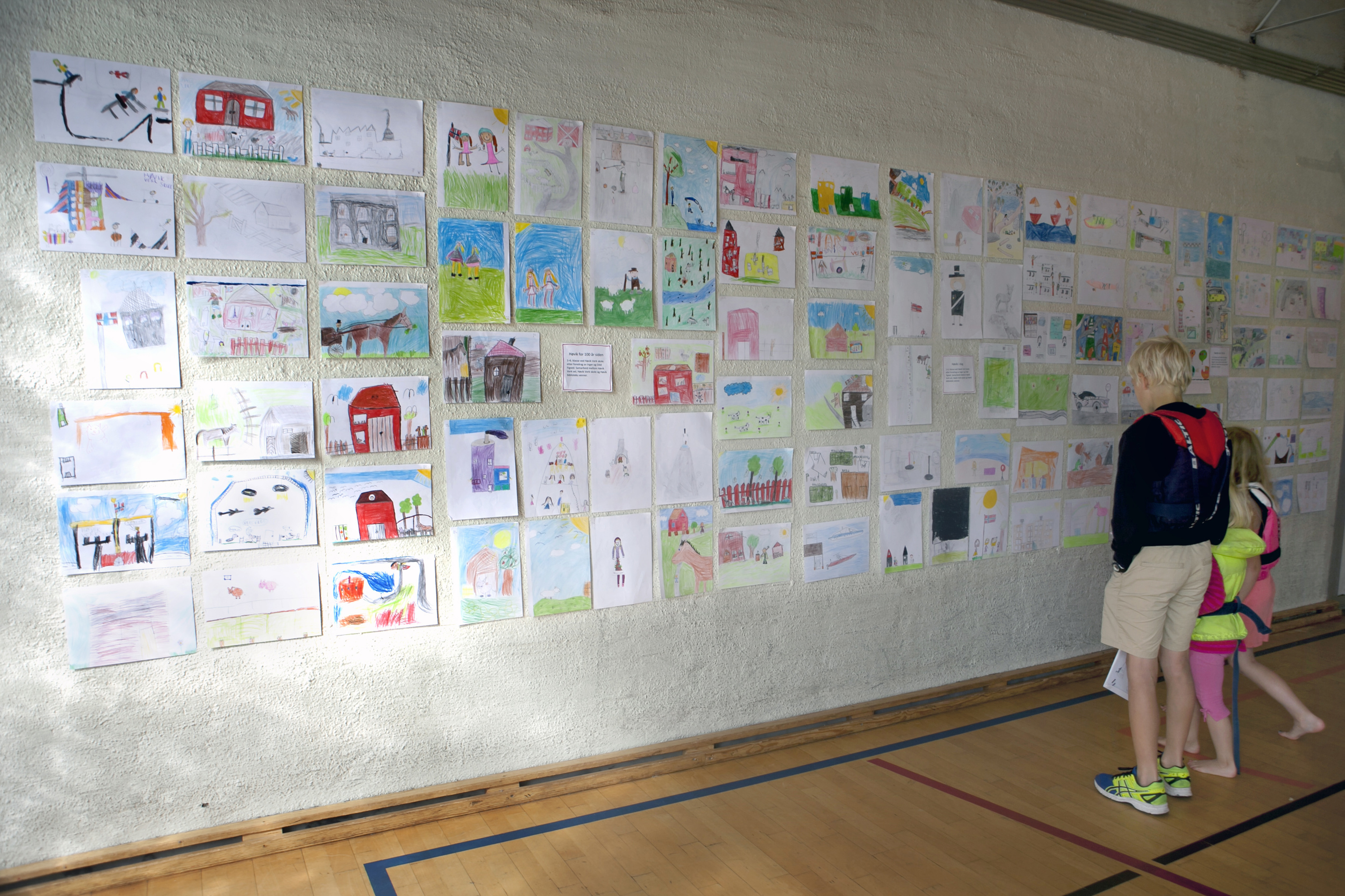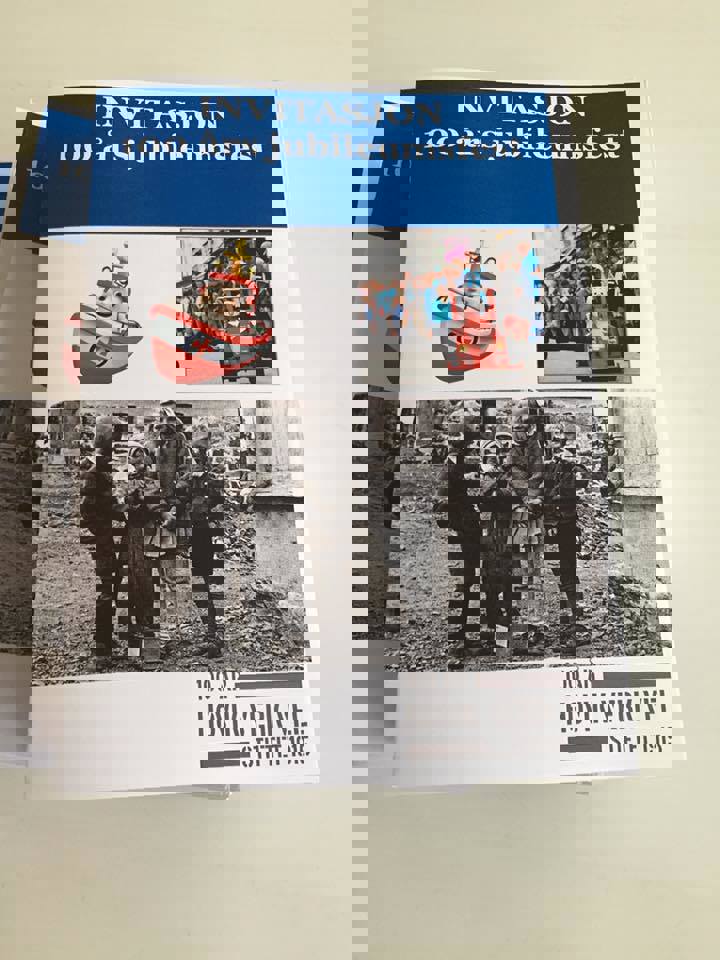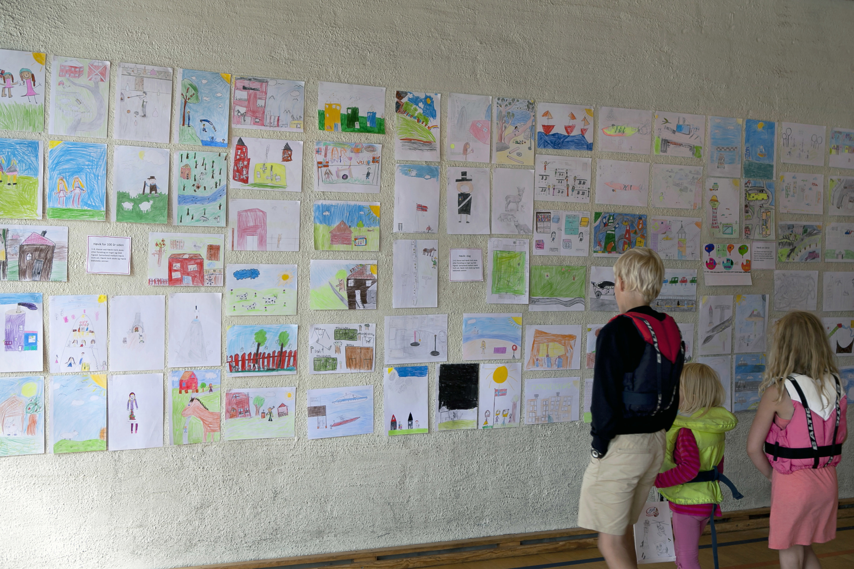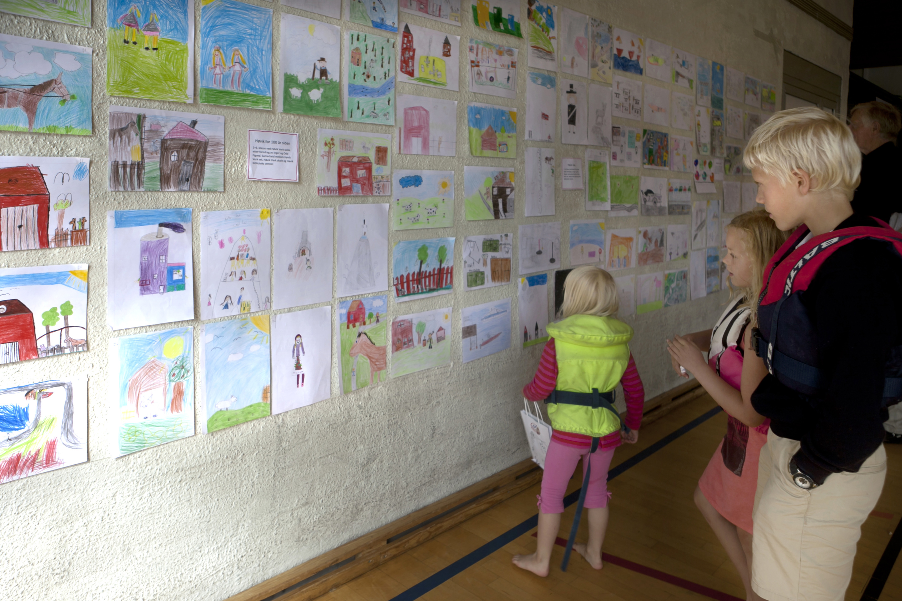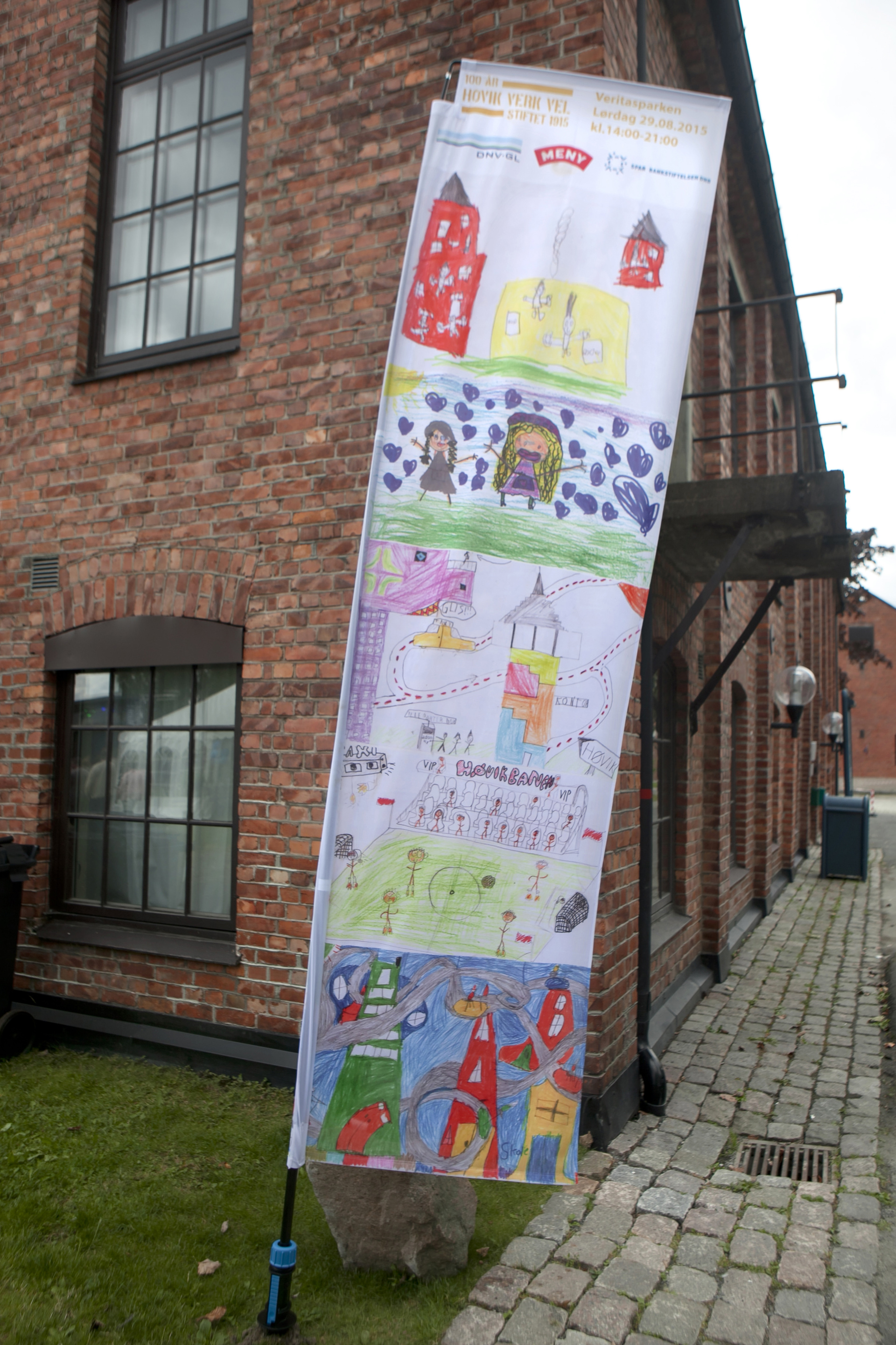 Jubileumsåret med bilder av bok, benker, kart, barnetegninger fra skolen (se også eget fotoalbum for flere tegninger), bannere og fest på Veritas for alle beboere. Fotografer: Emily Rojas, Rita Roarsen, Helge Finanger, Ingrid Falkenberg.