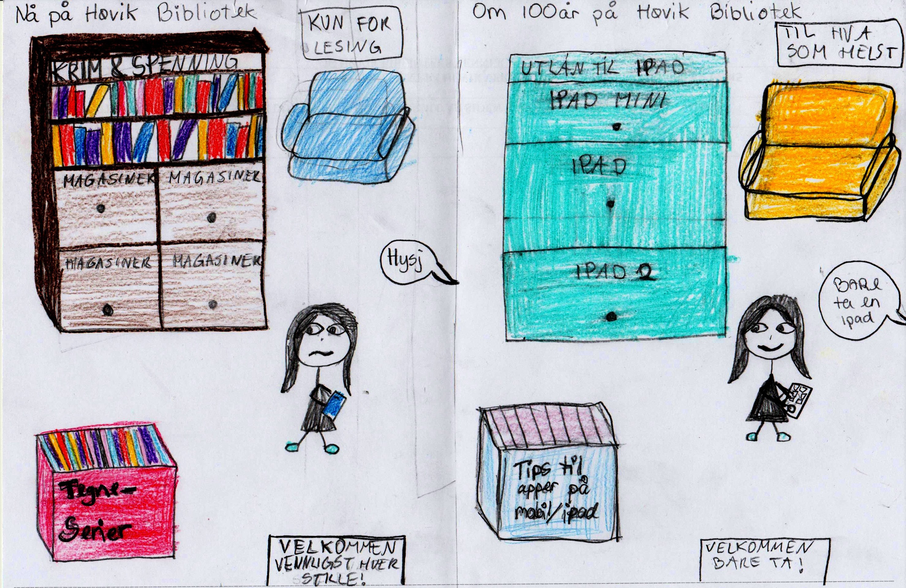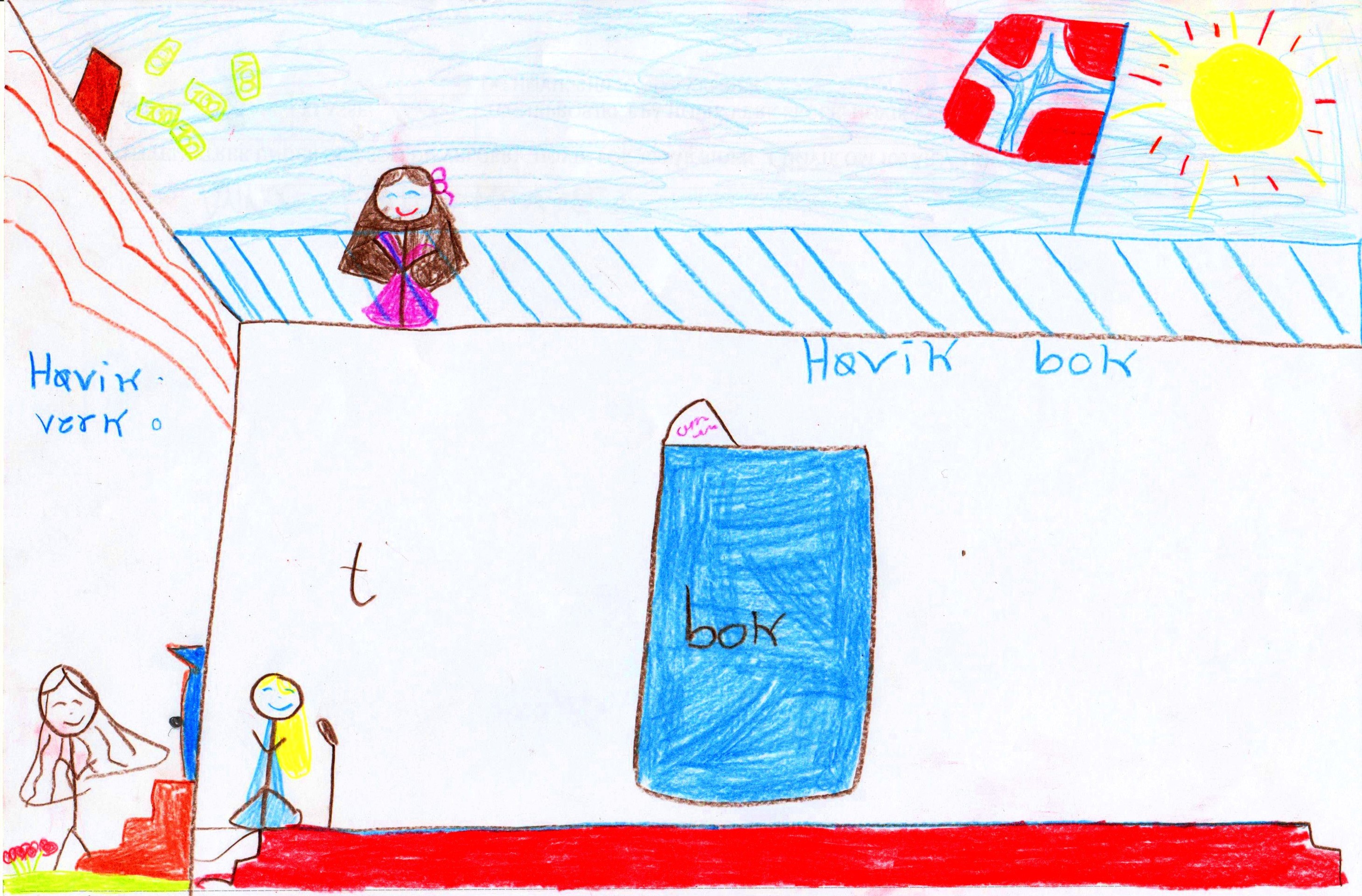 Barnetegninger fra Høvik Verk skole 2015-2016. Tegningene har tittelen Høvik Verk i dag, Høvik Verk om hundre år, eller Høvik Verk for hundre år siden. Samarbeid mellom HVV, Høvik biblioteks venner, skolen og Inger og Odd Figved, som stod for historieundervisningen i festsalen på skolen. Tegningene er bundet sammen til en bok som kan sees på Høvik bibliotek.